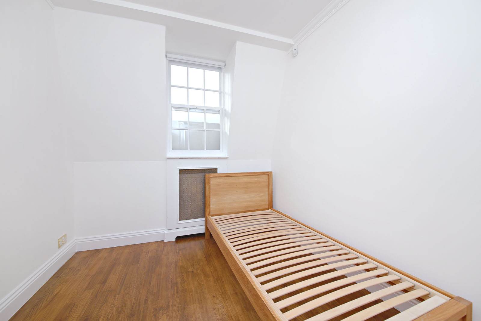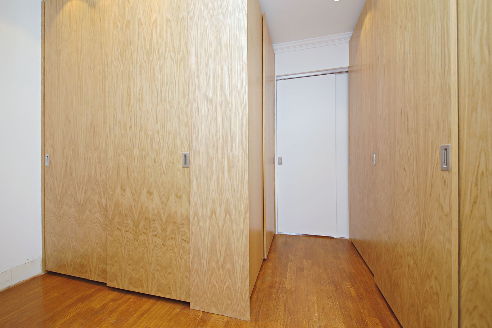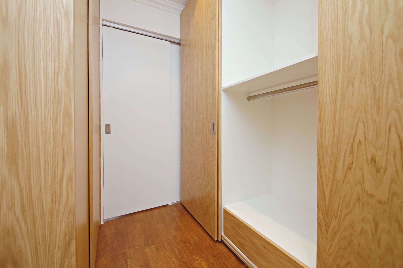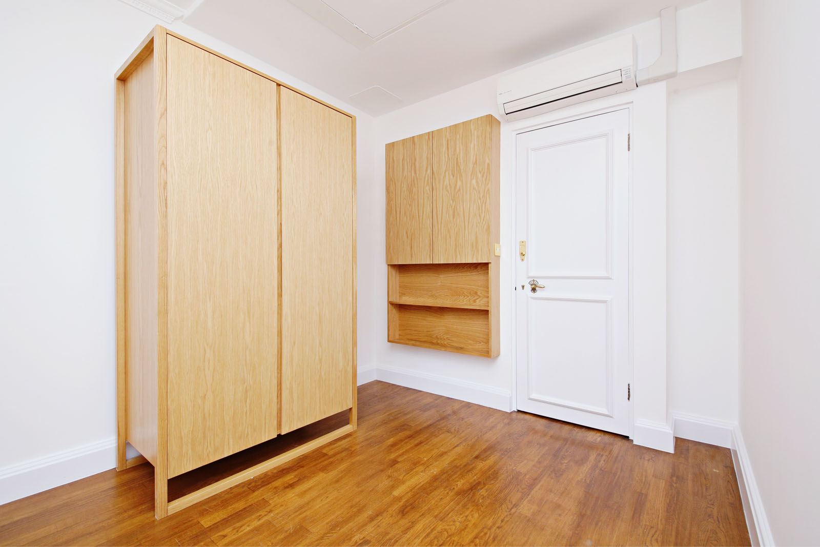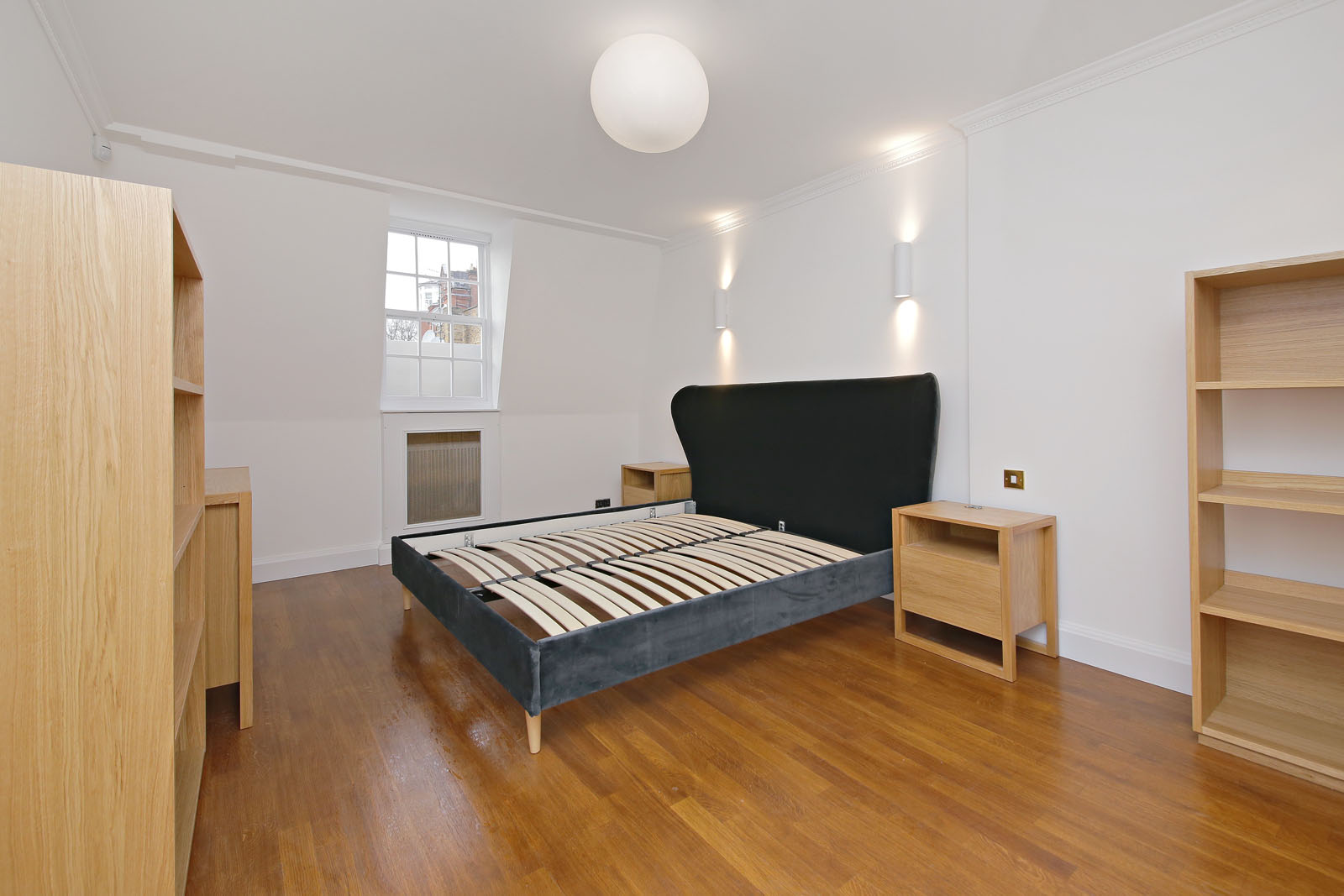 Complete renovation with loft conversion creating a three bedroom, two bathroom flat, new kitchen, rewired electrics, and bespoke joinery throughout.