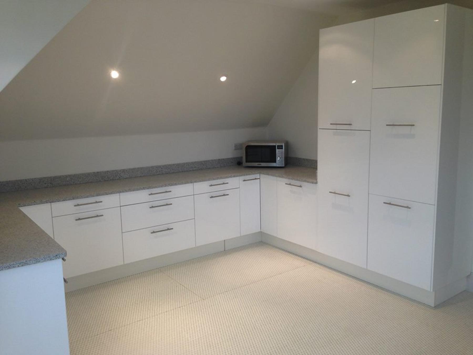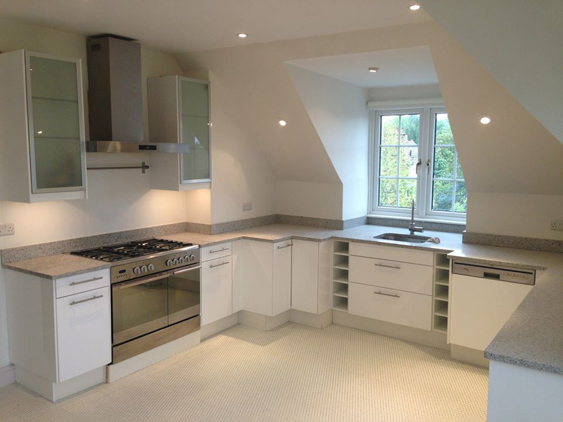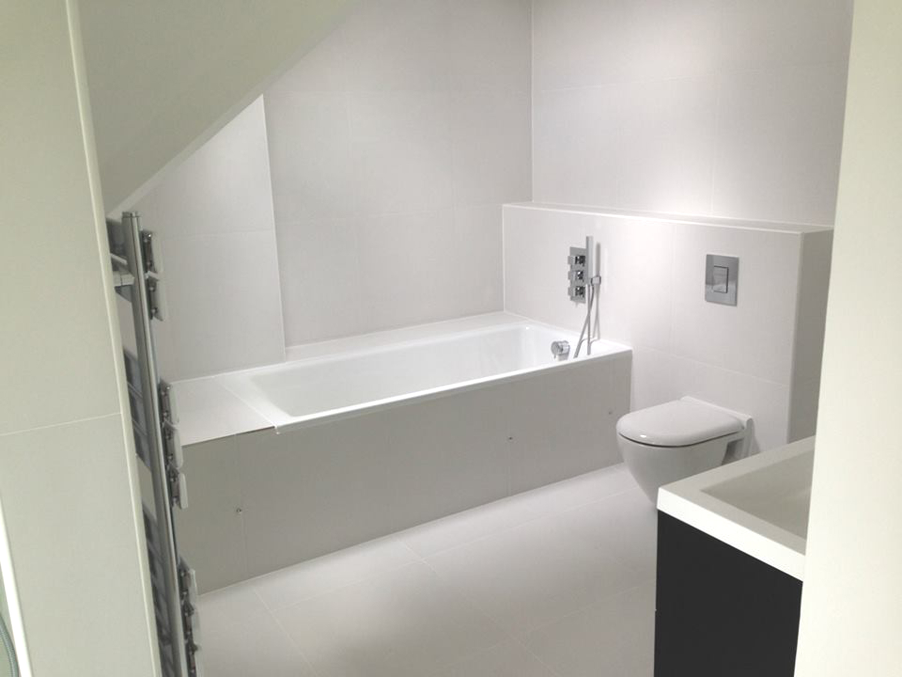 Complete renovation with loft conversion creating a three bedroom, two bathroom flat, new kitchen, rewired electrics, and bespoke joinery throughout.