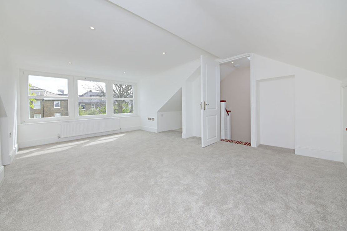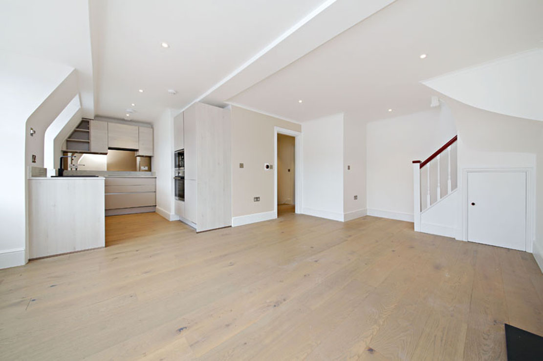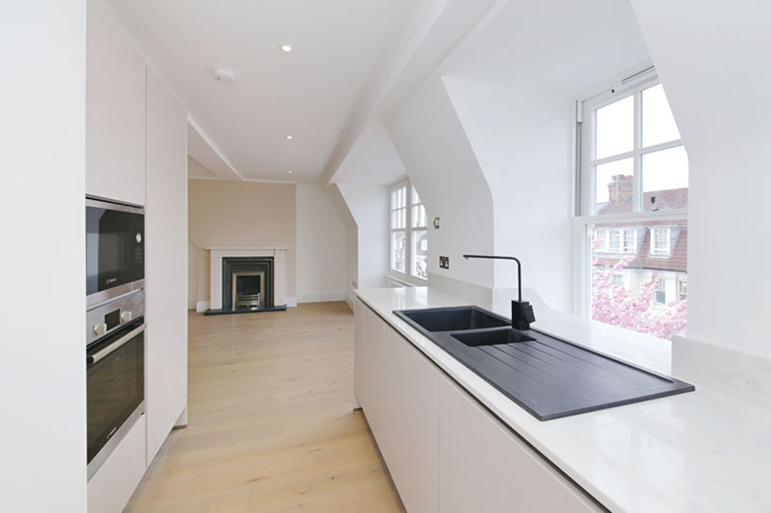 This project involved a complete renovation of the entire property, including a full loft conversion that transformed the space into a three bedroom flat with two bathrooms. Every room was stripped back and rebuilt to a modern standard, reimagining the layout to maximise space and light.